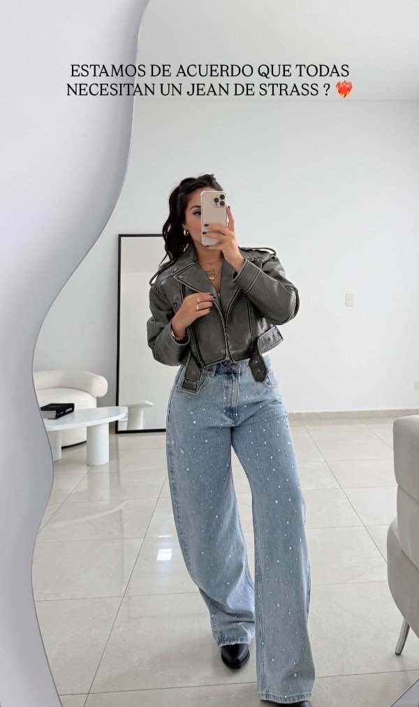 Jeans importado Pieta rígido celeste piedras